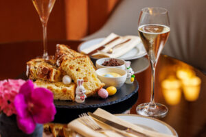 Per il pranzo di Pasqua il Ristorante Sadler, 1 stella Michelin, ospitato all’interno del luxury hotel Casa Baglioni di Milano, punta su un percorso gastronomico d’autore firmato da Chef Claudio Sadler insieme all’Executive Chef Giacomo Lovato. Un menu di cinque portate che esalta i sapori di stagione tra eleganza e creatività: tra gli antipasti, l’Uovo morbido ‘Bio’ con spuma di patate e Toma Piemontese, asparagi cotti e crudi, crumble di Grana Padano e nocciole apre la strada al Raviolo 2×3 di magro alle erbette, fave, piselli freschi, olio al cipollotto e tartufo nero. Immancabile un grande classico pasquale, il Cosciotto d’agnello arrosto con millefoglie di patate e radicchio tardivo di Treviso e salsa alle spezie. A concludere, l’Uovo di cioccolato fondente, fragole e limone precede la Colomba di Sadler con crema al mascarpone. Un’esperienza da vivere nell’intima e accogliente atmosfera del ristorante, dove l’alta cucina si spoglia di ogni formalismo per far sentire gli ospiti come a casa.